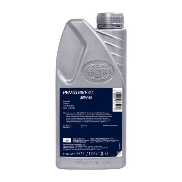 PENTOBIKE 4T 20W-50 es un aceite de motor especialmente formulado para motocicletas V-Twin de 4 tiempos, especialmente de fabricantes americanos. También es adecuado para otras configuraciones de motor que requieran este grado de viscosidad. Ofrece propiedades lubricantes superiores, manteniendo el motor limpio mientras lo protege del desgaste y la corrosión desde el primer uso.